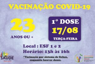 O município recebeu, neste primeiro momento, 60 doses da vacina, as quais terão como foco de imunização os profissionais da área da Saúde, selecionados por idade e por risco, sendo que a meta é de vacinar 34% desta população. Conforme o secretário de Saúde, Adriano Santiago, a próxima etapa deverá contemplar idosos a partir de 75anos.