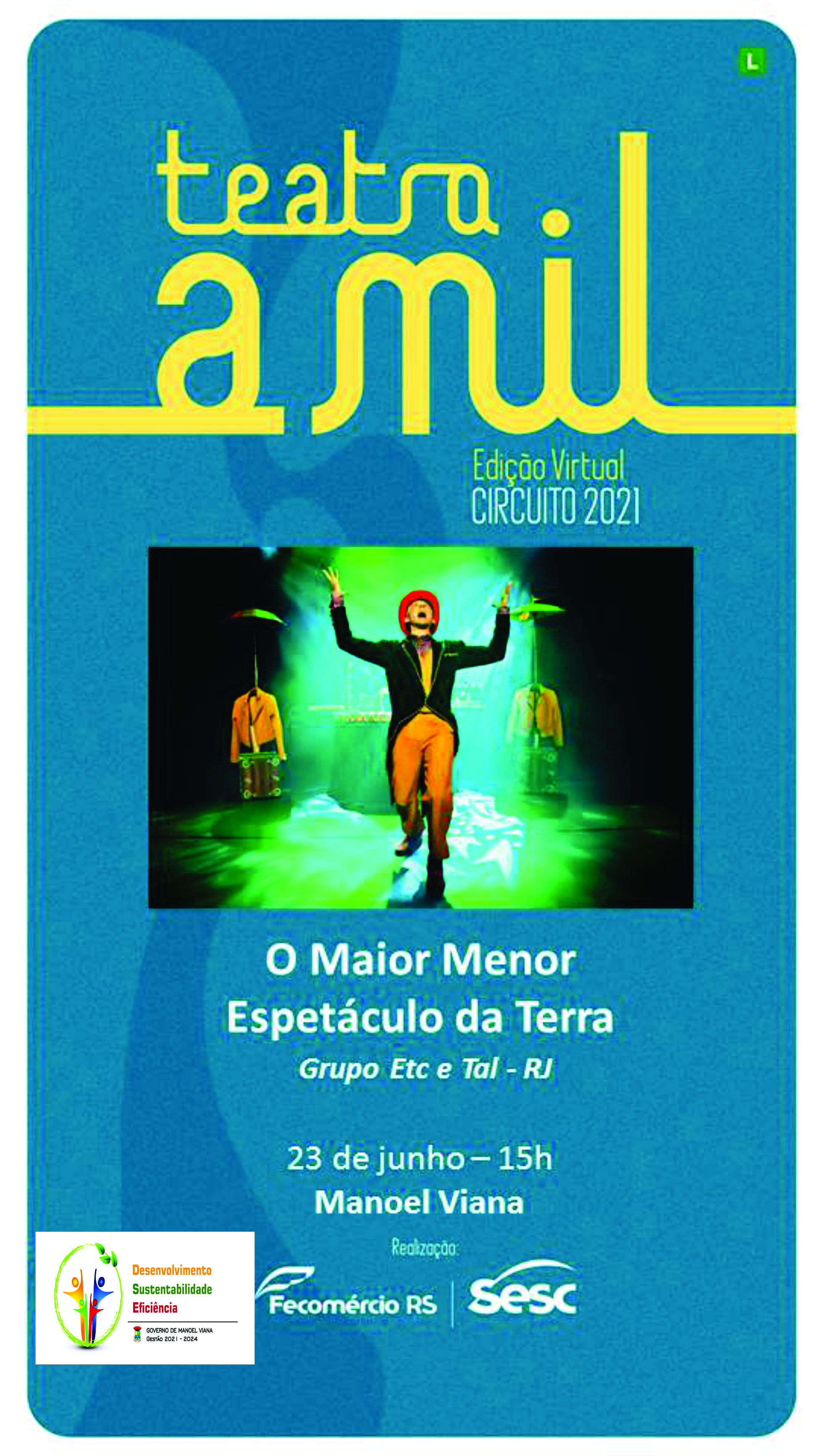 A fim de dar seguimento a estas importantes ações, a Prefeitura de Manoel Viana, através da Secretaria de Educação, Cultura, Turismo e Desporto em parceria com o Sesc Alegrete, promoverá a primeira etapa do Projeto Teatro a Mil, que oferecerá à comunidade escolar, a apresentação do espetáculo “O Maior Menor espetáculo da Terra”, do grupo carioca Etc e Tal.