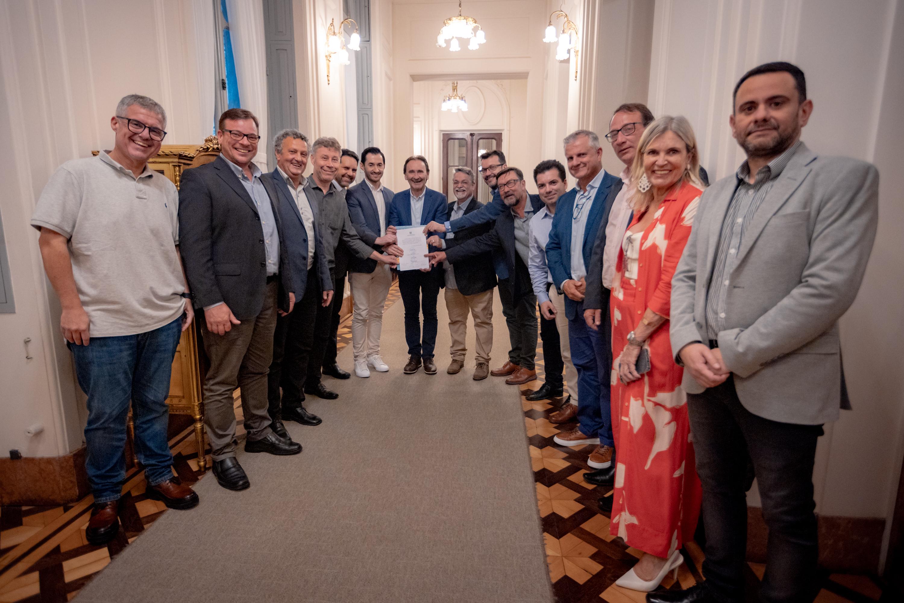 Concluindo a agenda em Porto Alegre, na noite desta quinta-feira (07) o Prefeito Gustavo Medeiros e o Vice-prefeito Careca acompanharam a assinatura do contrato e da ordem de início do serviço de asfaltamento da ERS-176 em Manoel Viana. O ato ocorreu no Palácio Piratini e marcou um momento significativo para o município de Manoel Viana.