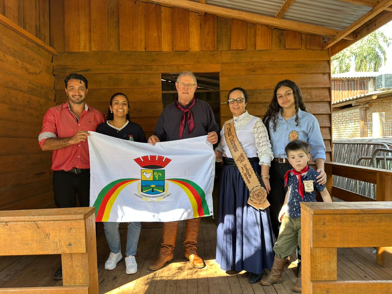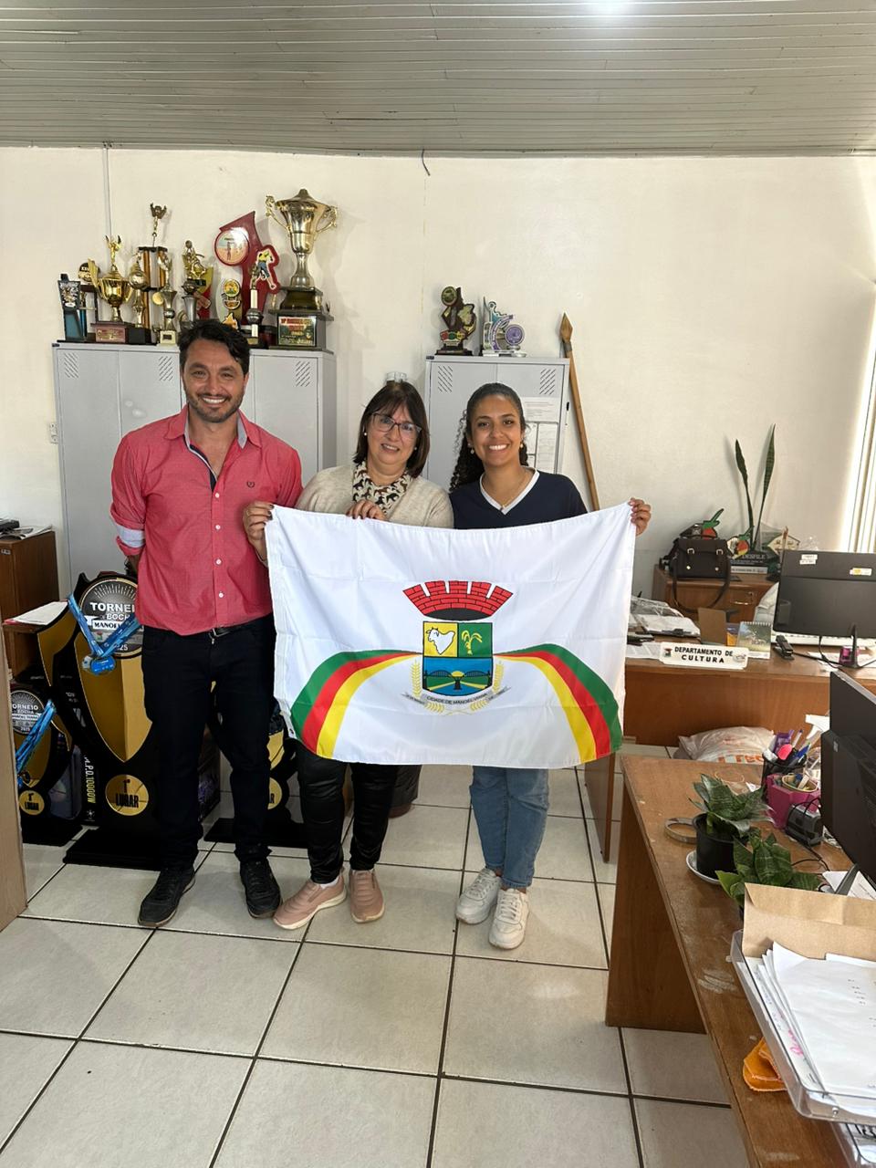 Na manhã de hoje, 19/09, o secretário de Turismo, Cultura e Desporto Eduardo Lara, acompanhado da diretora de Cultura Juliana Silveira, realizou a entrega de uma bandeira do Município para cada entidade tradicionalista de Manoel Viana.